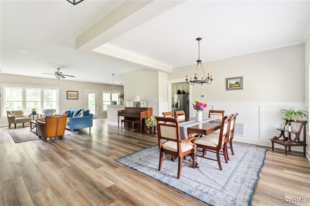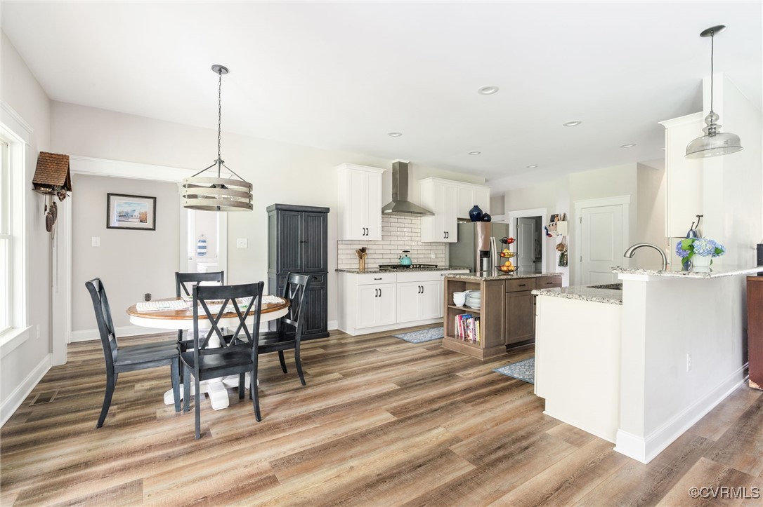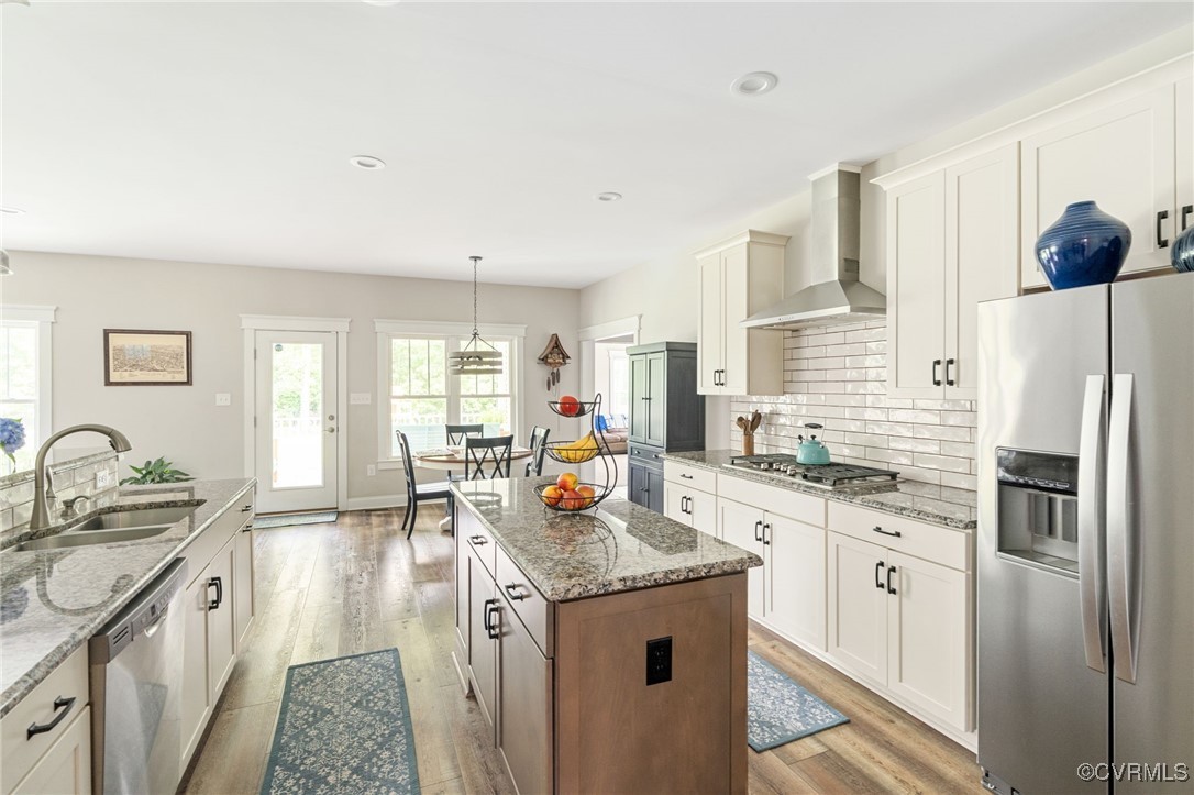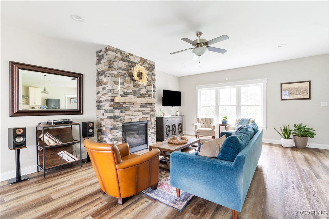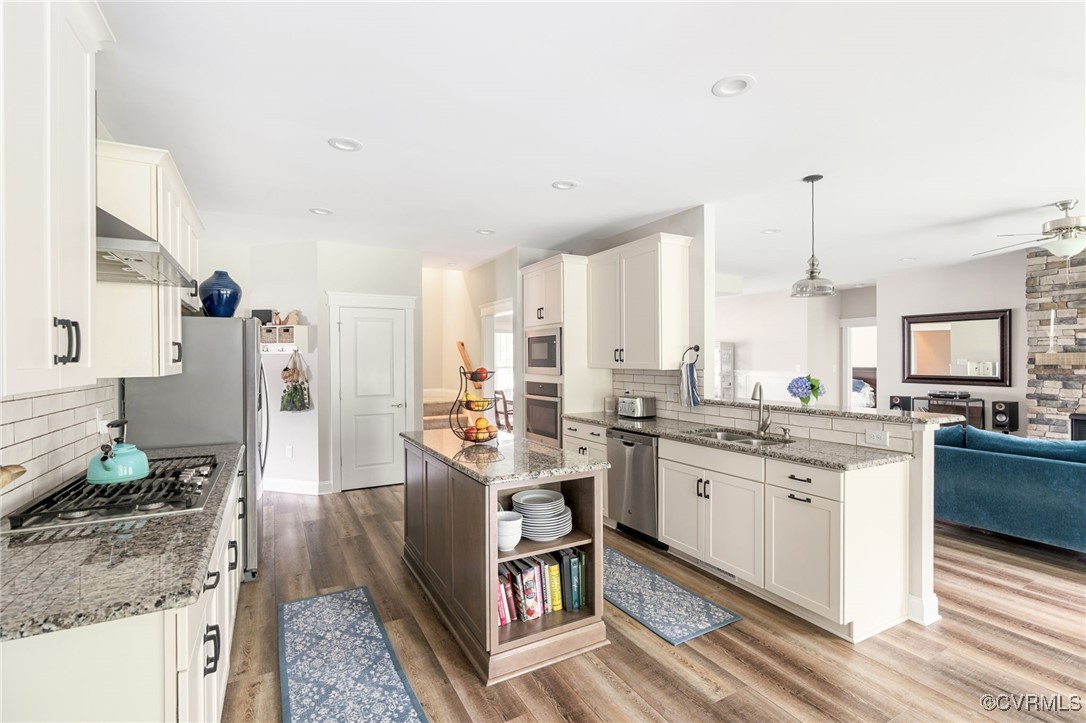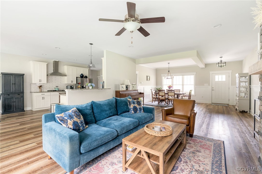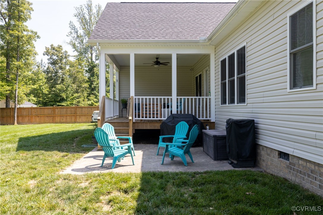 Welcome to Autumn Hill in Hanover County! This beautifully designed 5-year-old home, built by Austin Hamlin Homes, offers the perfect blend of comfort, functionality, and privacy on just over 3/4 acre backing to a wooded reserve. The sought-after first-floor primary suite is a true retreat with dual walk-in closets, a spa-like bath featuring separate vanities, a glass shower, and soaking tub. Enjoy open-concept living with a stone gas fireplace, formal dining room, and seamless flow for everyday comfort or entertaining. The eat-in kitchen stands out with custom cabinetry, granite countertops, subway tile backsplash, large island, gas cooktop, wall oven, built-in microwave, and a walk-in pantry. Two additional first-floor bedrooms and a dedicated laundry room complete the main level. Upstairs offers a home theater, a spacious office/flex room, a large guest bedroom, full bath, and an additional room perfect as a fifth bedroom or hobby space. Outdoor living includes a covered porch, patio with built-in gas line for grilling, fenced backyard with lush grass, fire pit space, and oversized 2-car garage.