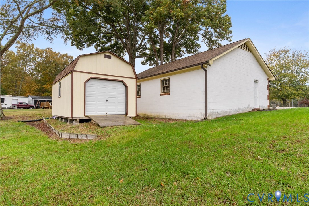 Beautifully situated in Sandston, this charming all-brick ranch rests on just over three acres of rolling grassy hills and open pastureland accented by mature trees, offering both peaceful views and a sense of privacy. This property is ideal for those seeking country living with suburban convenience--close to I-64 and I-295 for quick access into Richmond and beyond. A huge detached garage provides the perfect space for a workshop or vehicle storage, complemented by a wide driveway with room for guests or work vehicles, plus a detached shed for additional storage. Outdoor living shines with a full front porch for morning coffee and a newly painted rear deck for entertaining, all supported by the reliability of a whole-house generator. Inside, you'll find a cozy den with a brick-surround gas fireplace and beamed ceiling, an inviting eat-in kitchen, a large laundry and mudroom, and three bedrooms including a primary suite with an updated tiled shower, along with a spacious hall bath and convenient half bath. Meticulously maintained by its current owners, this home also offers newer windows, a newer roof, a gas fireplace, a water purification system, and recent servicing of the septic and well. Whether move-in ready or awaiting your personal touches, this Sandston property offers a rare opportunity to enjoy tranquil land, modern comforts, and commuter convenience all in one.